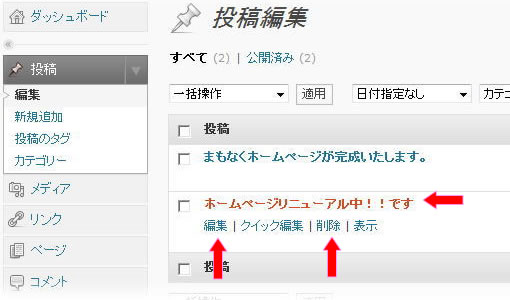| 訂正や削除したい記事のタイトルにマウスを当てると タイトルの色が変わり |