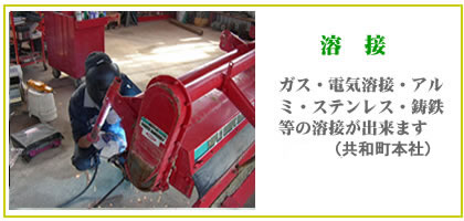 扱い品目 農業・産業機械の販売、修理、加工・電気・ガス溶接・鉄骨設計施工・オイルやケミカル商品